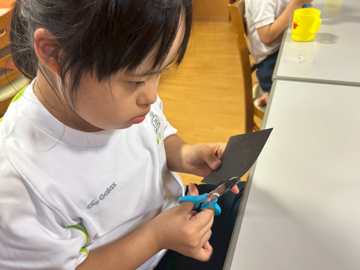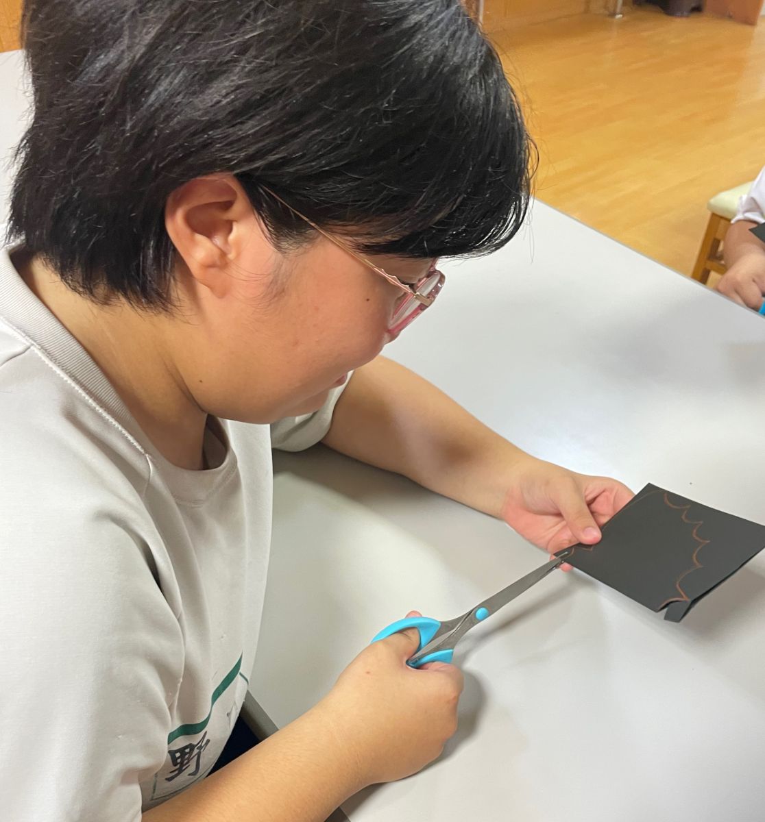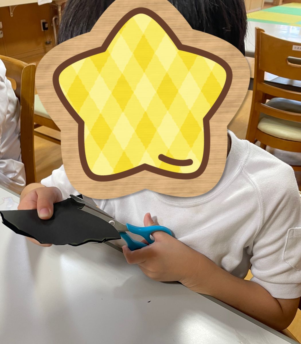 はぐくみで初めてハロウィン工作に挑むYくん![]()