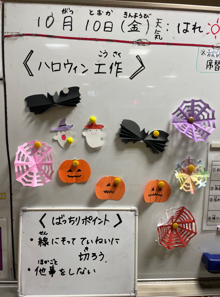 今年のハロウィン工作では、コウモリと蜘蛛の巣を作りました![]()