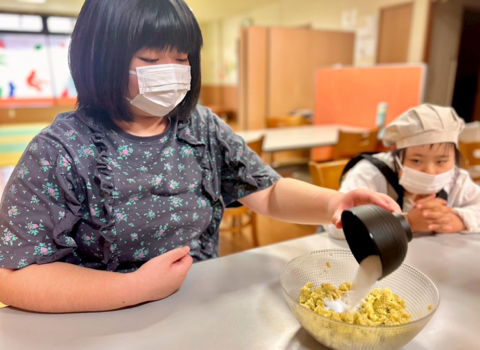 普段何気なく食べているおやつも、自分で作る事で、材料や作り方、必要な調理器具など様々な事を学ぶ事ができます。