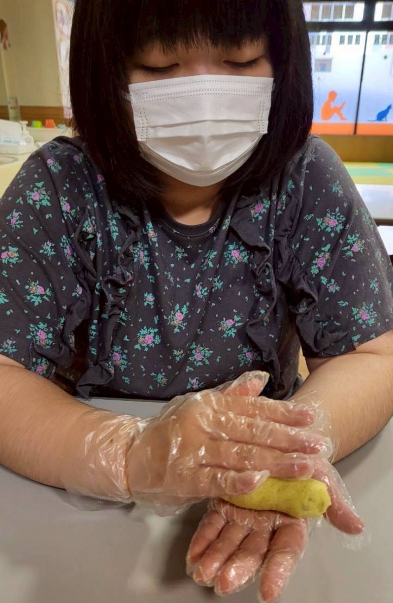 タネが完成したら、ミニサイズのさつまいも型に形成していきます![]()