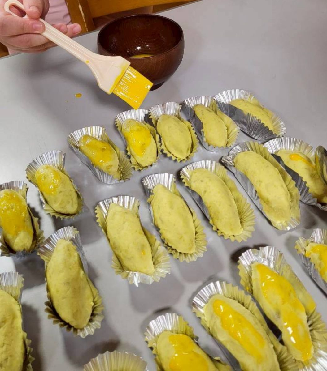 きれいに並べて卵黄を塗って、オーブンで焼いたら~