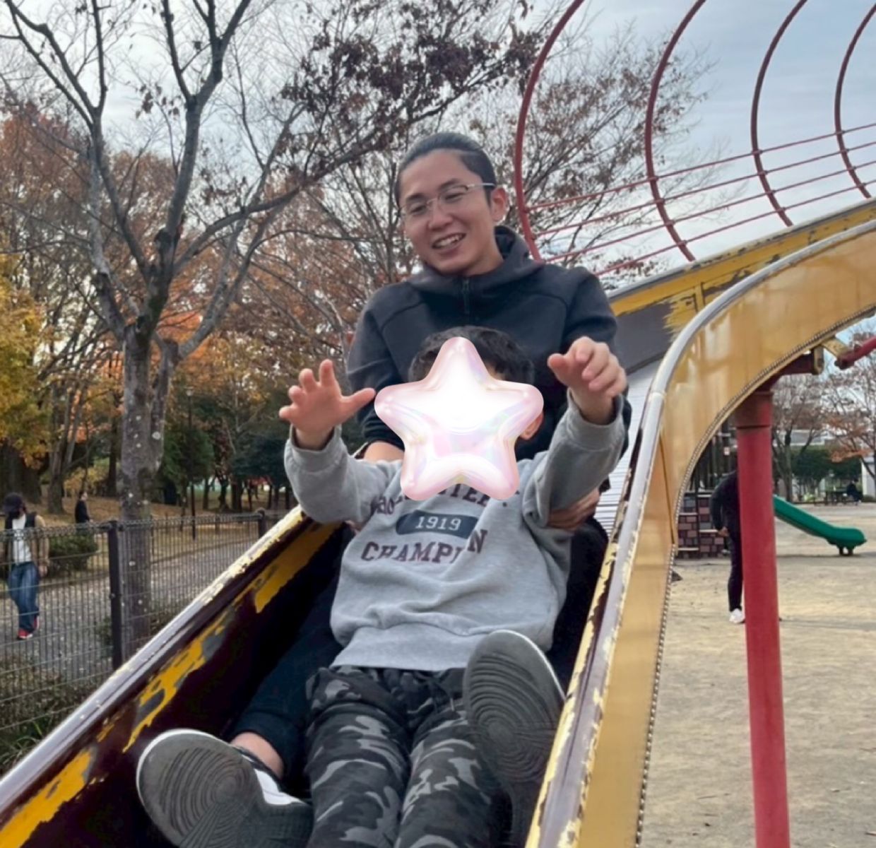 大好きな先生と久しぶりに遊べて満面の笑みのKくん![]()