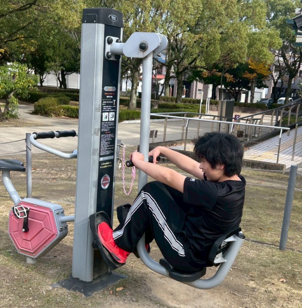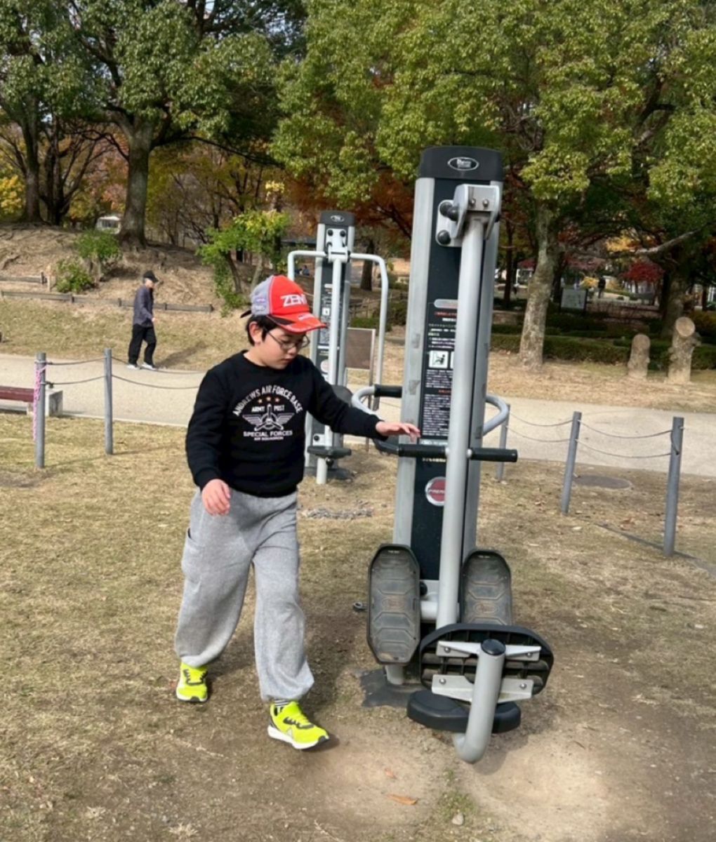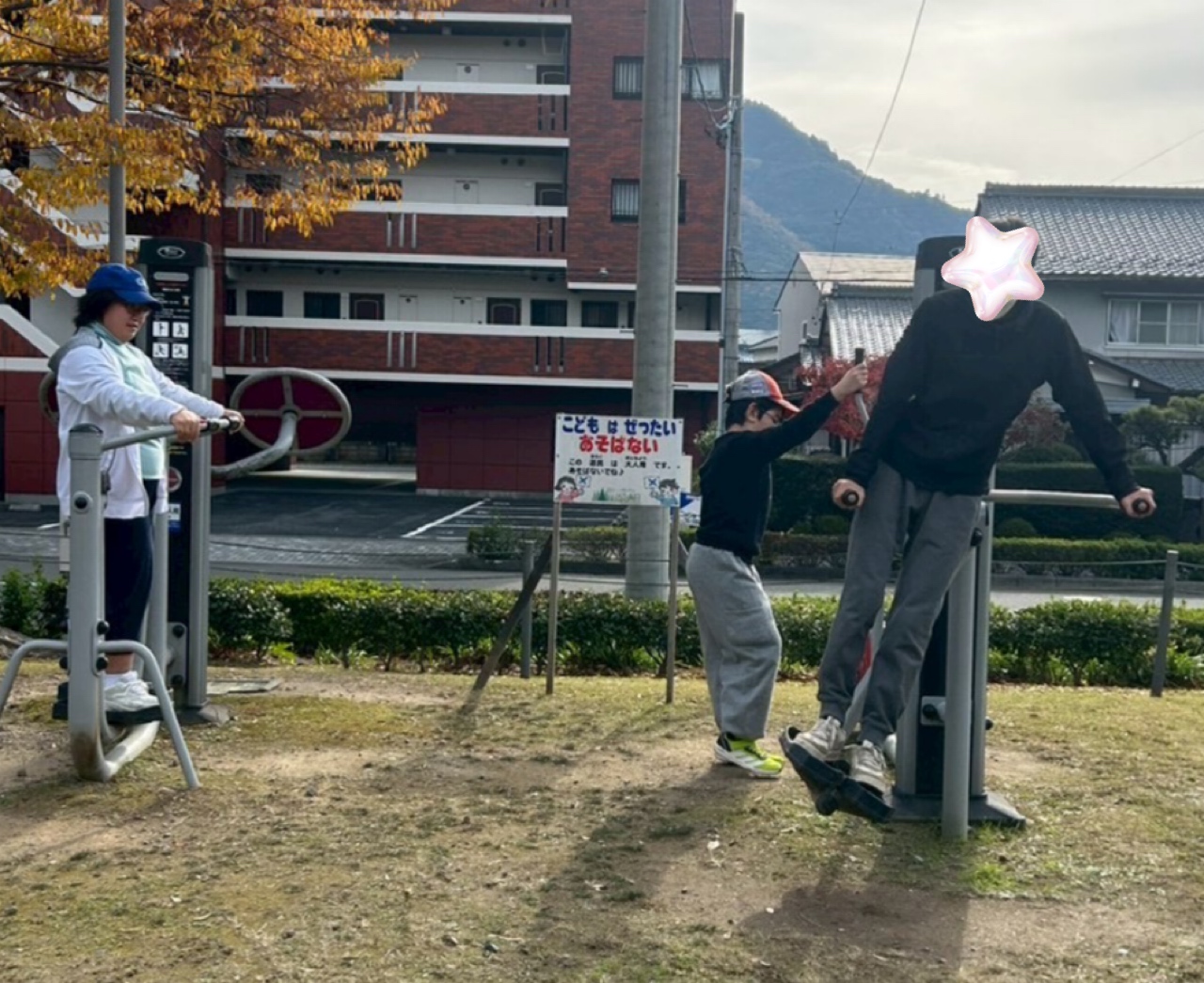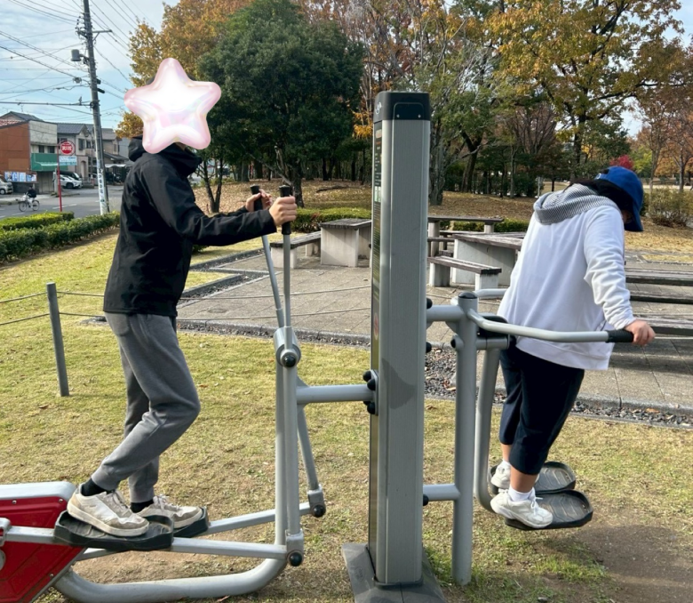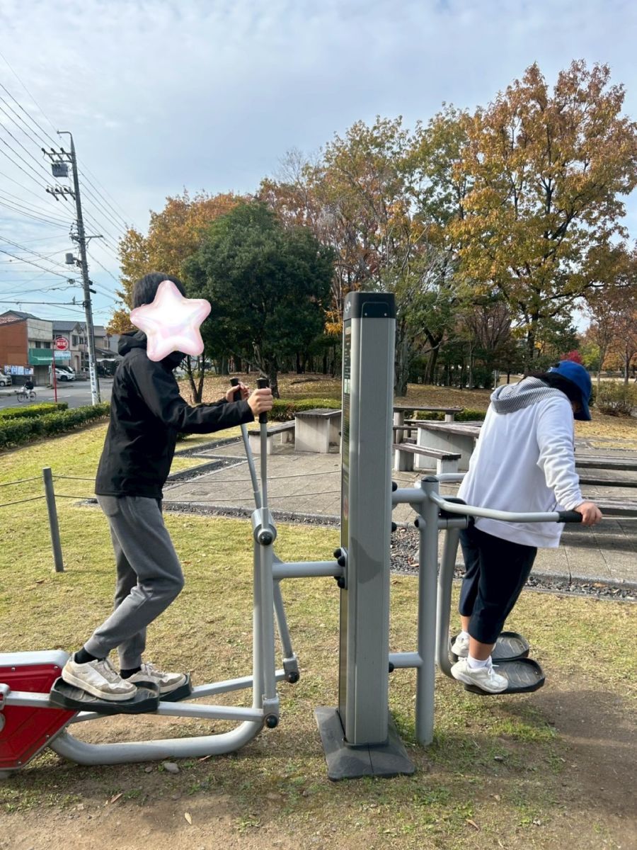 長良公園にはトレーニング器具もあり、普段とは違う遊びができるのもいいですね![]()