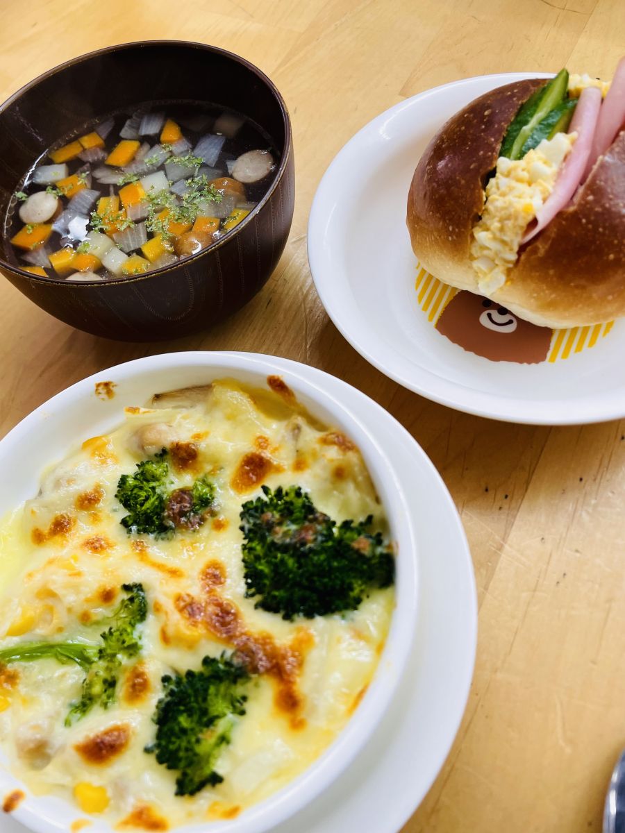 凍える日にこそ食べたくなる、アツアツ『野菜たっぷりヘルシーグラタン』と、みんなが大好きな『ハムたまごサンド』を作りました。 バターや小麦粉は使用せず、じゃがいものでんぷん質を生かしとろみをつけた、ヘルシーグラタンです。![]()