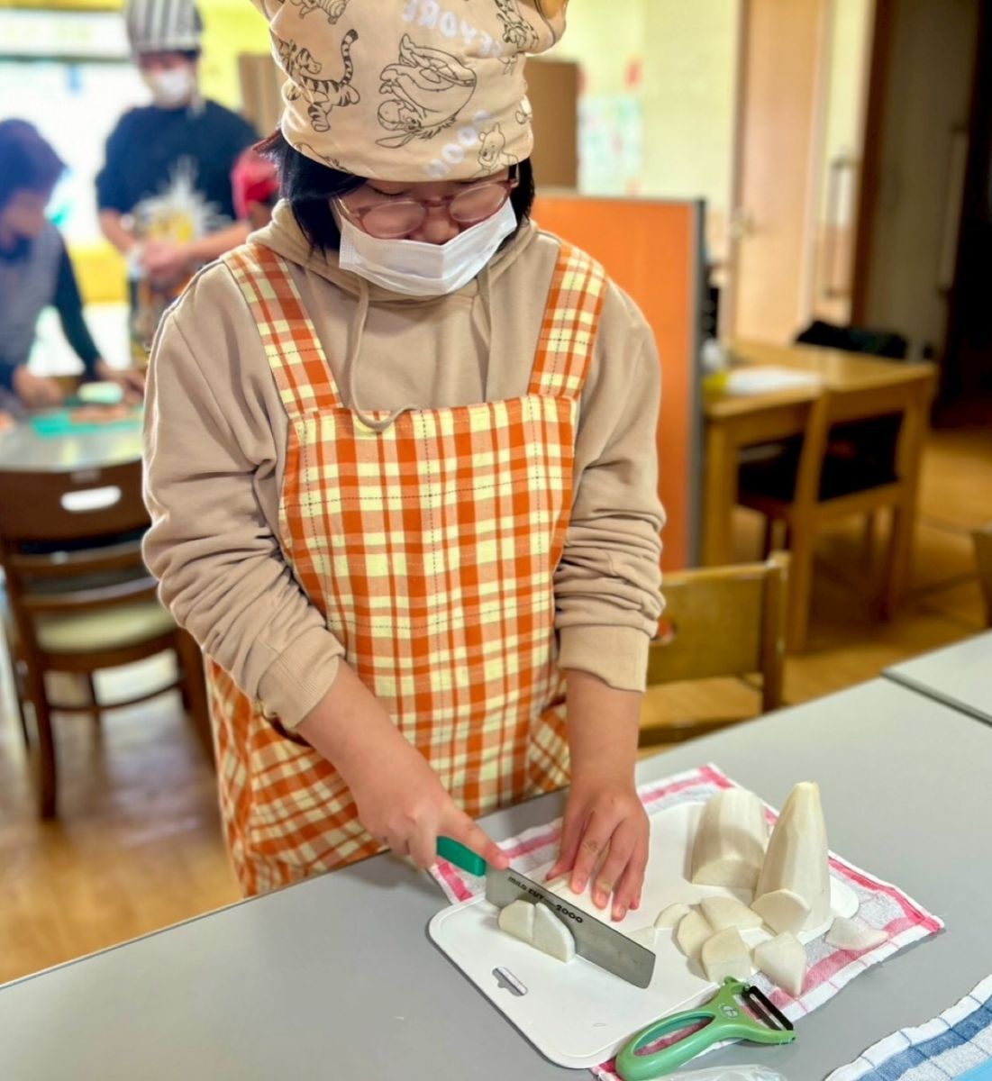 今回のはぐくみの調理実習では、けんちん汁風の具沢山のお雑煮を作りました![]()