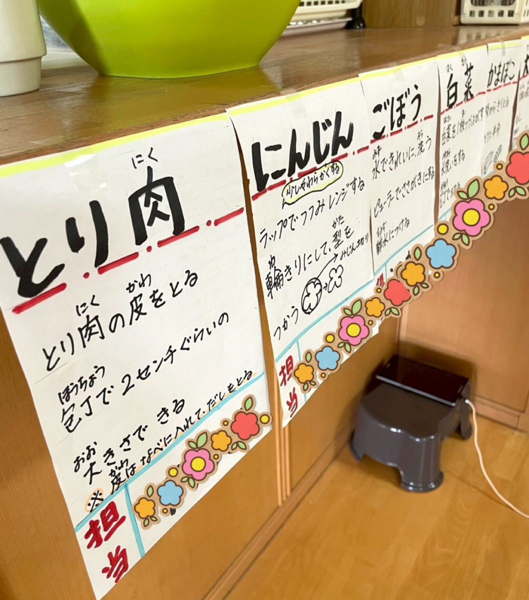 それぞれ担当の具材と下準備の方法を明記した用紙があることで、困った時も自分で確認しながら作業をすすめることができていました![]()