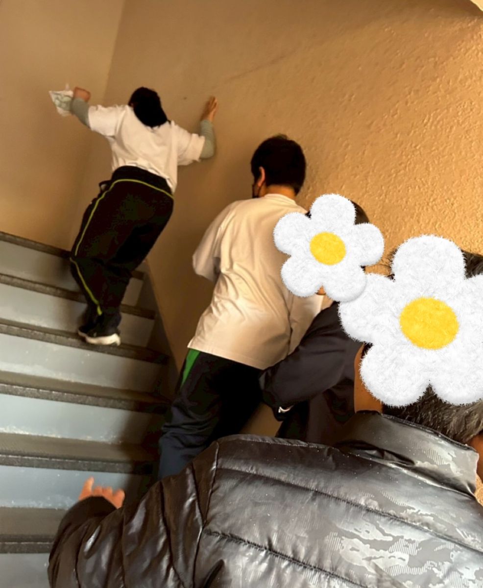 マンションの最上階まで避難し、職員の話を真面目に聞くことができていました![]()