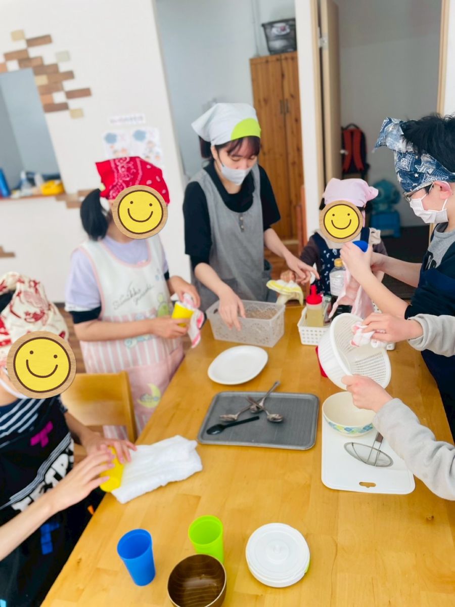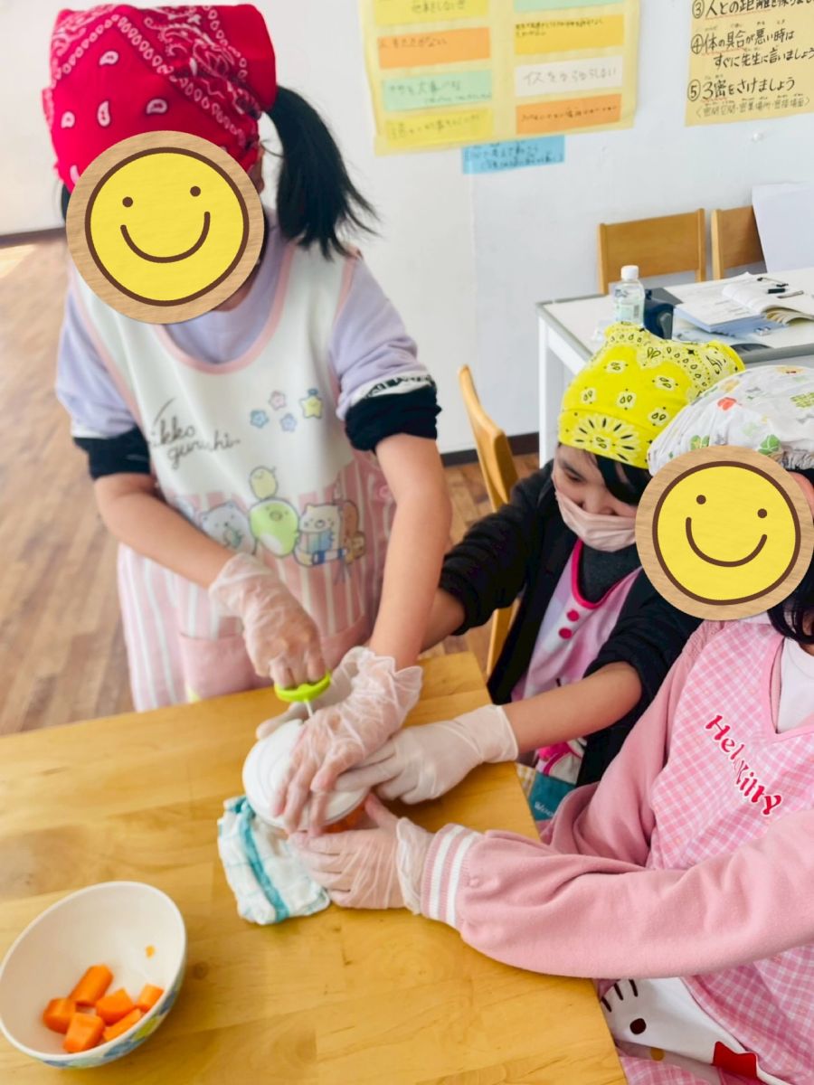 調理実習は子供たちにとっては楽しい半面、長時間の作業に疲れが見られる子もいます。それでも無意識にみんなでやり遂げようという気持ちが最後まで諦めない子供たちの頑張りに繋がっていると感じています。回数を重ねるごとにひとつ、またひとつ「できること」が増えて行く姿が楽しみです。