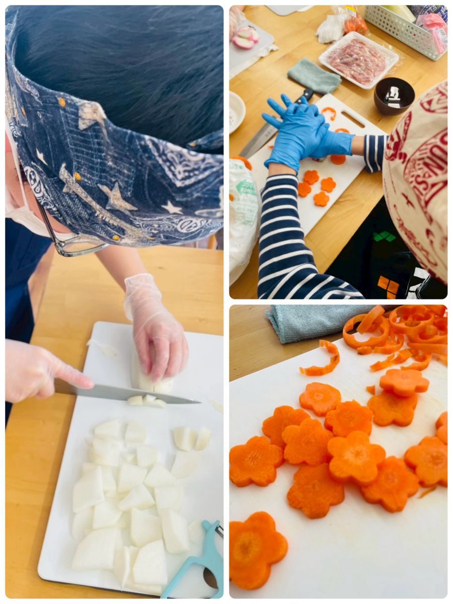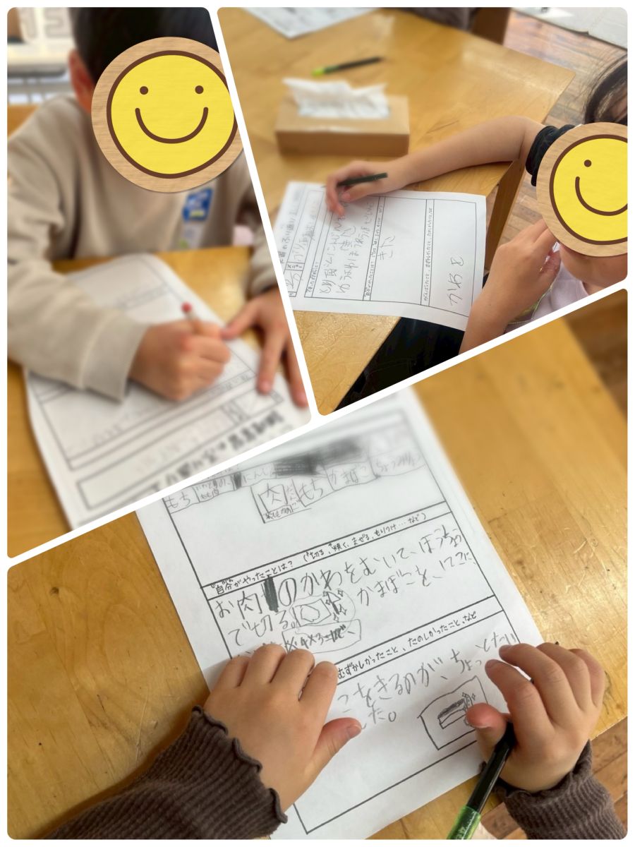 低学年の子は、鶏肉の皮を剥いだり、決まった数にかまぼこを切ったり、難しいことにも進んでチャレンジしてくれました。
