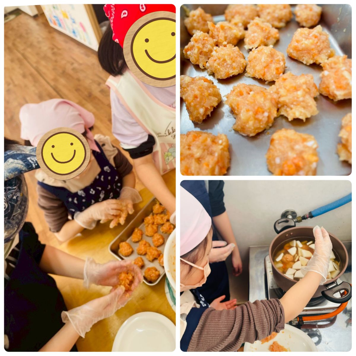 みんなでお団子を丸めて、ゆ〜っくりお鍋に投入!