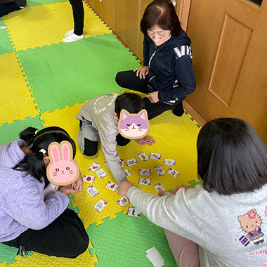 同時に札に手が伸びた場合はルールに沿って「じゃんけんぽん!」で勝負を決めます![]()