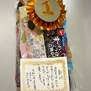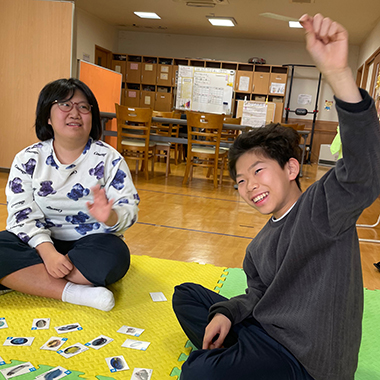 中学生のMちゃんは、小学生の小さなお友達に札が見やすいようにと向きを替えて並べてくれました![]()