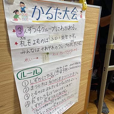 職員からカルタ大会のルール説明を聞き、みんなでしっかり確認です![]()