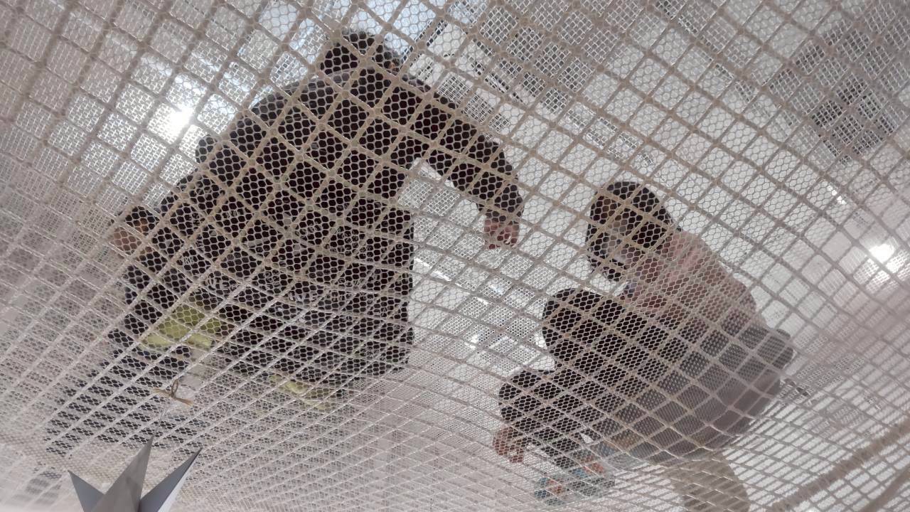 みんながまず向かった先はネット遊具![]()