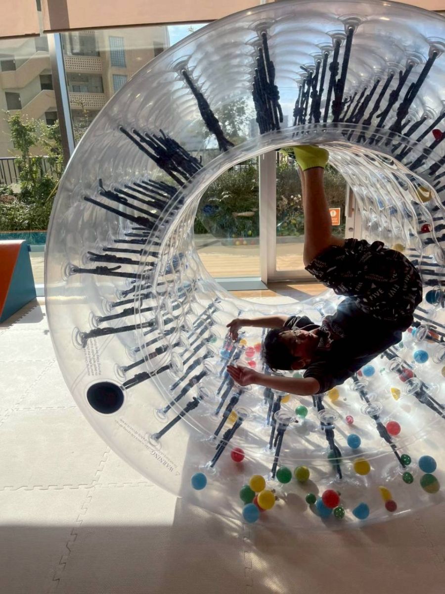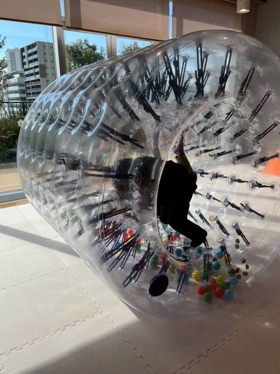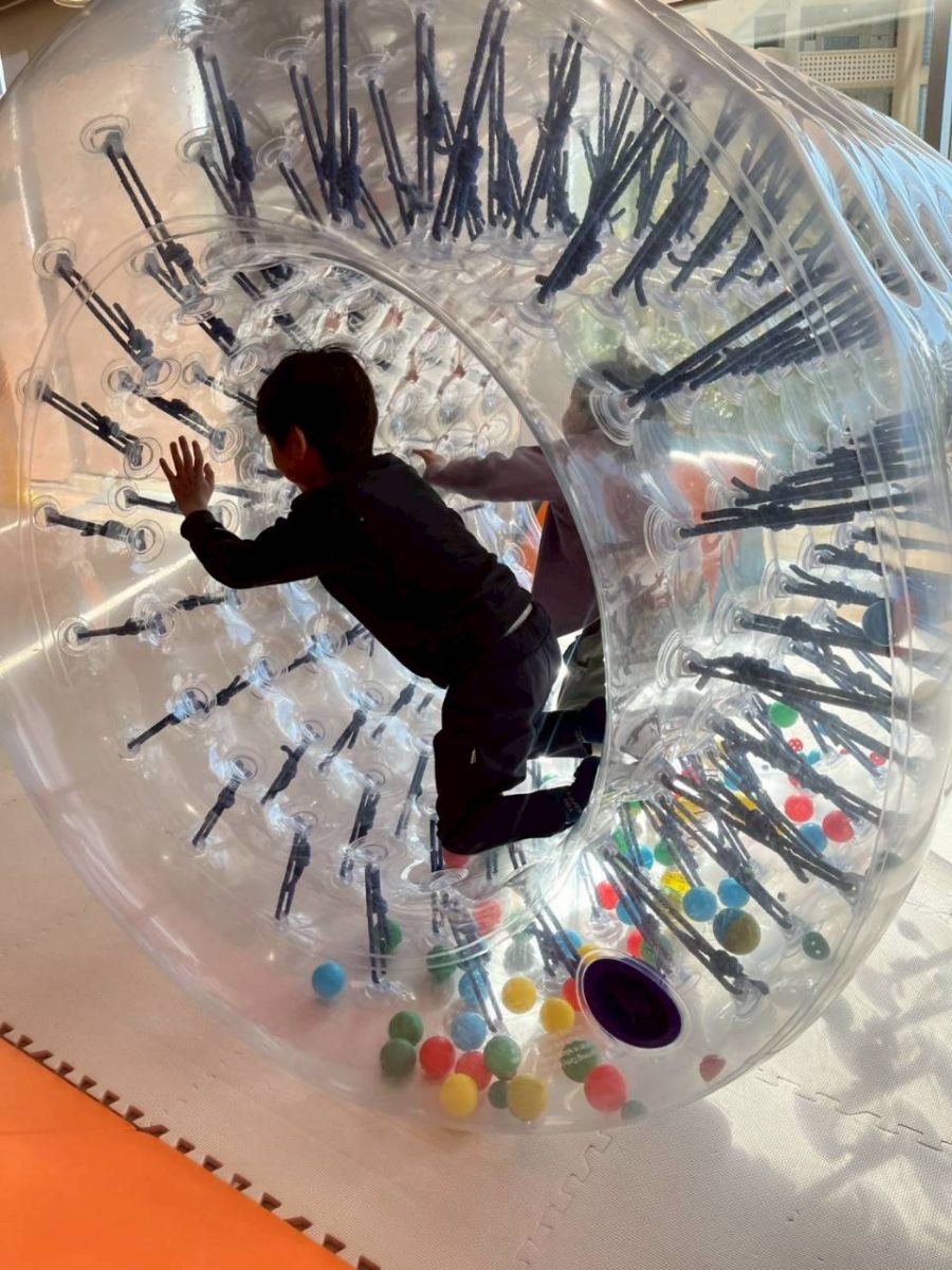 サイバーホイールでは、自分の力で押したり、お友だちと協力してみたり、と様々でしたが、どうしたら進むのかを自分で考えてみる力が育まれそうですね。