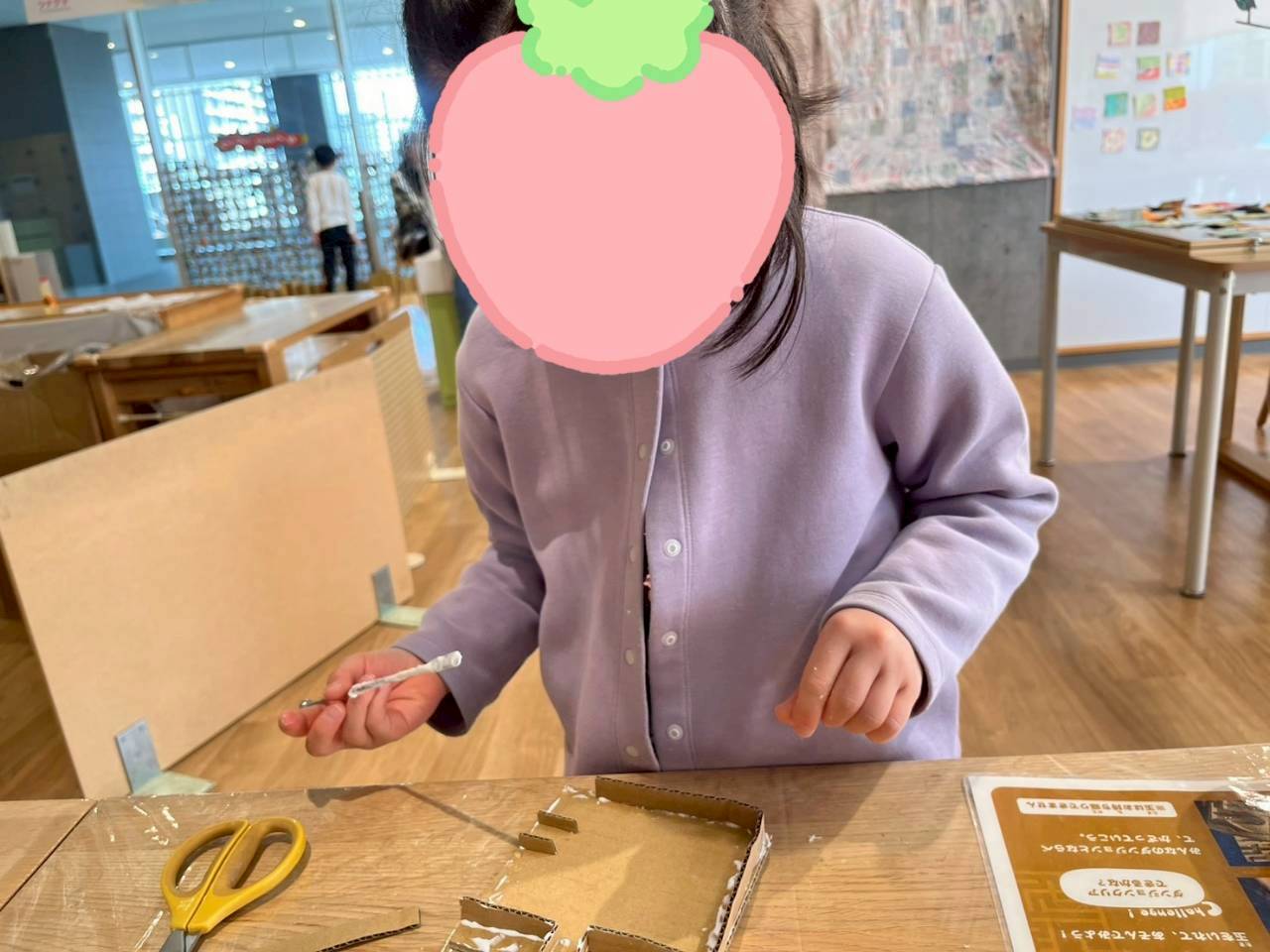 身体を動かし終え、休憩を挟んでからは工作の出来るエリアがあり、モノ作りを行いました![]()