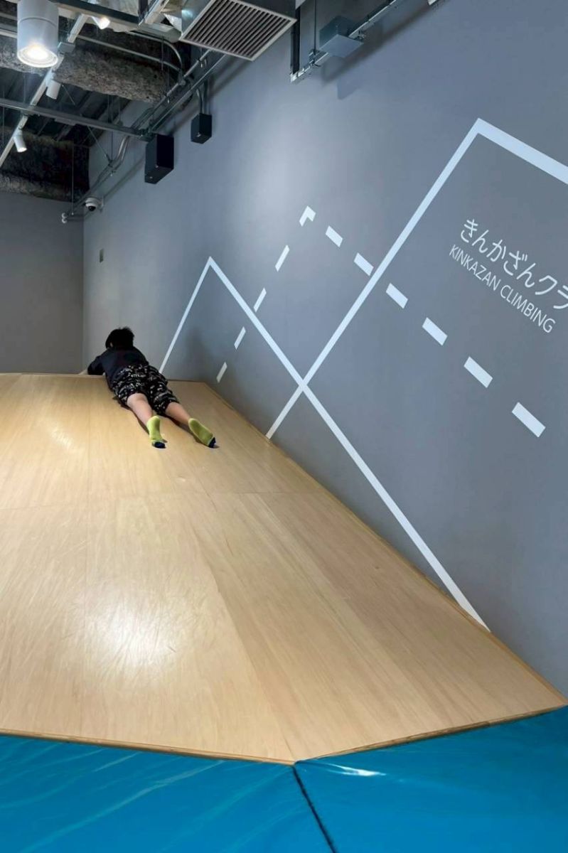 低学年グループがモノ作りに取り組んでいる間に奥にクライミングが出来る場所があり、斜面を滑ったり、上ったりしながら身体を動かしていきました![]()