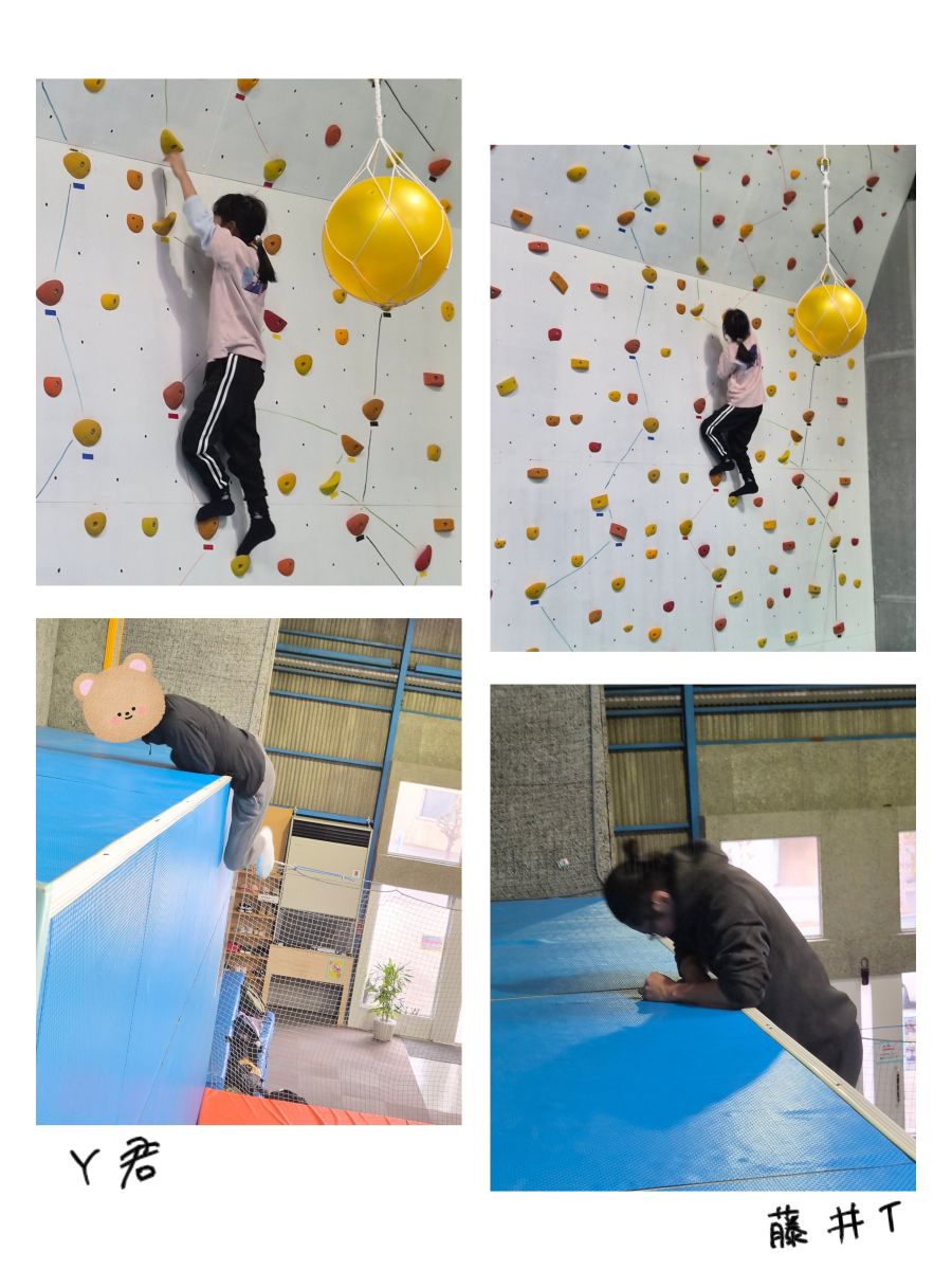 ちょっとレベルの高いボールタッチやウォール(登れる壁)にもチャレンジしています![]()