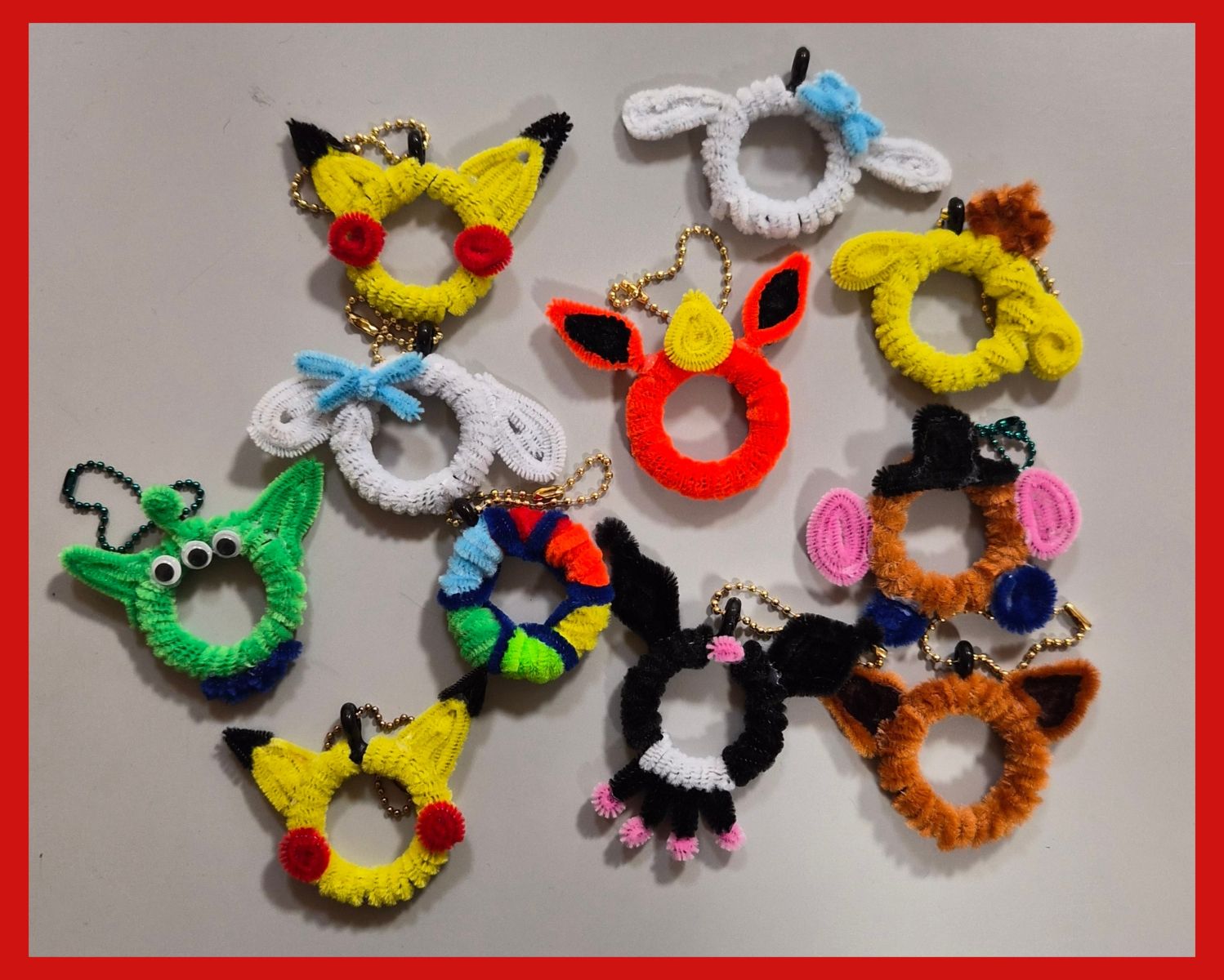 先日、百均で用意できる物(カーテンリング・モール)を使いみんなでキーホルダーを作りました![]()