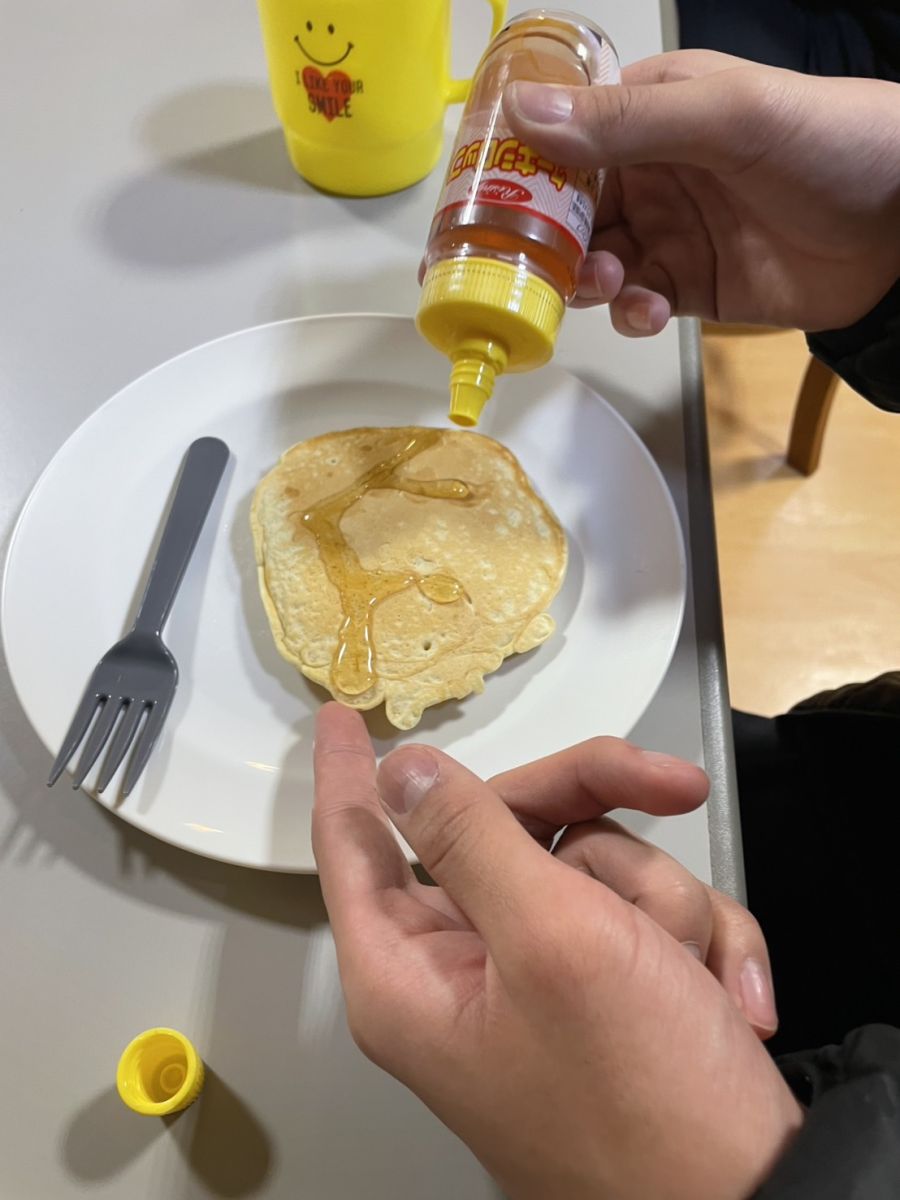 今回は、それぞれ好きな形のホットケーキを焼いてもらいました![]()