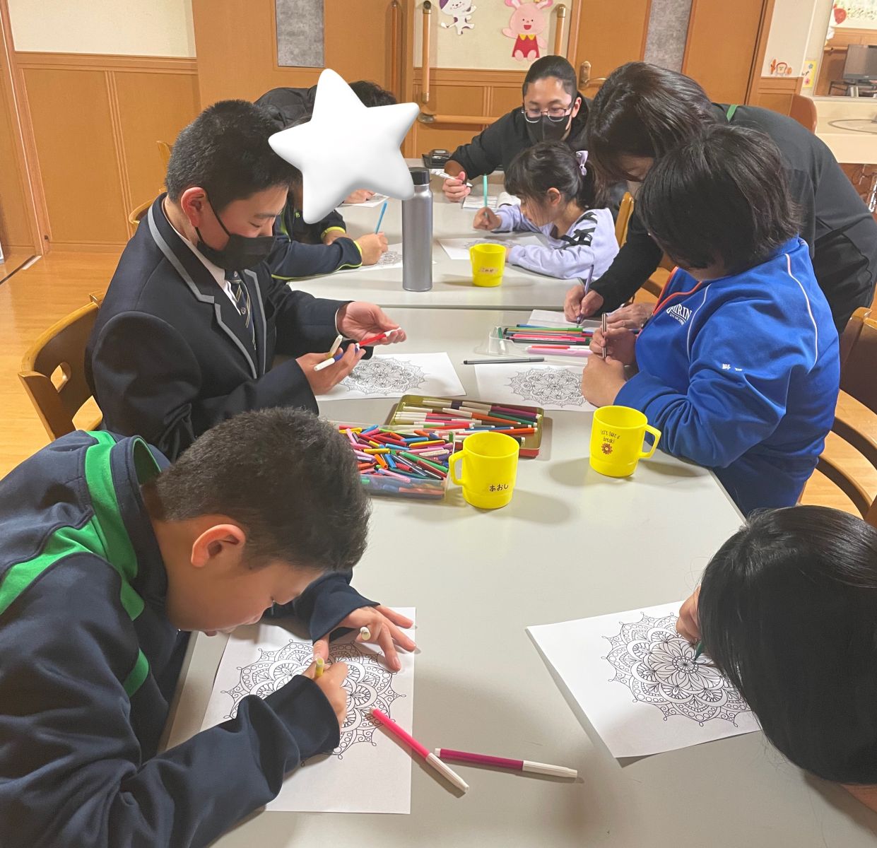 かなり細かい絵だったため、20分では塗り終えることができませんでしたが、数人の子どもたちは自分から「完成させたい」と自由時間に頑張って塗っていました![]()