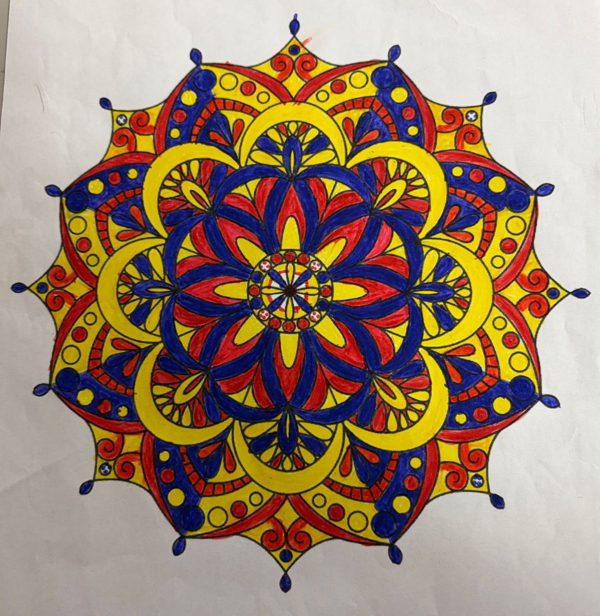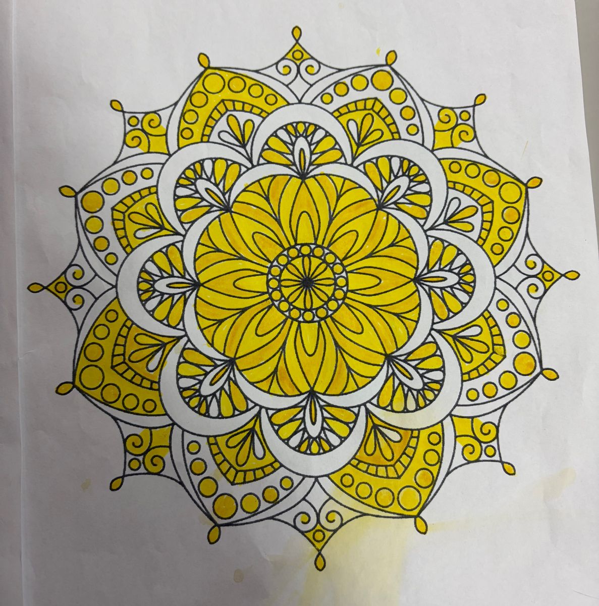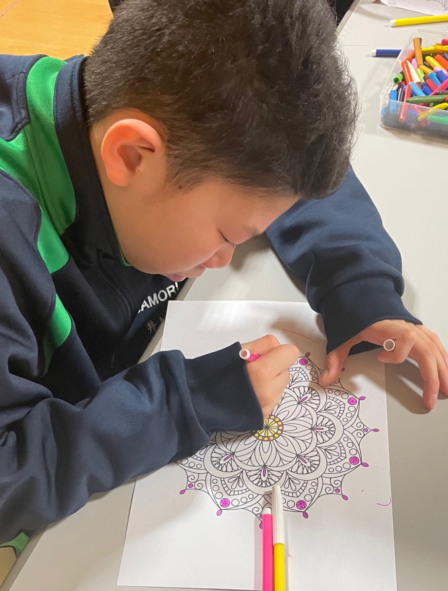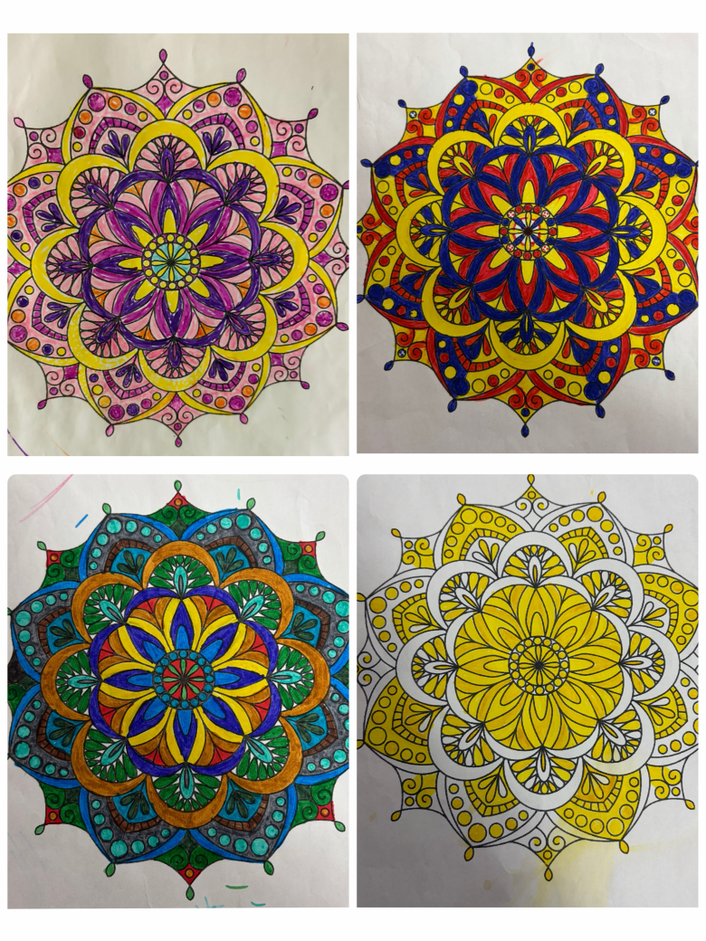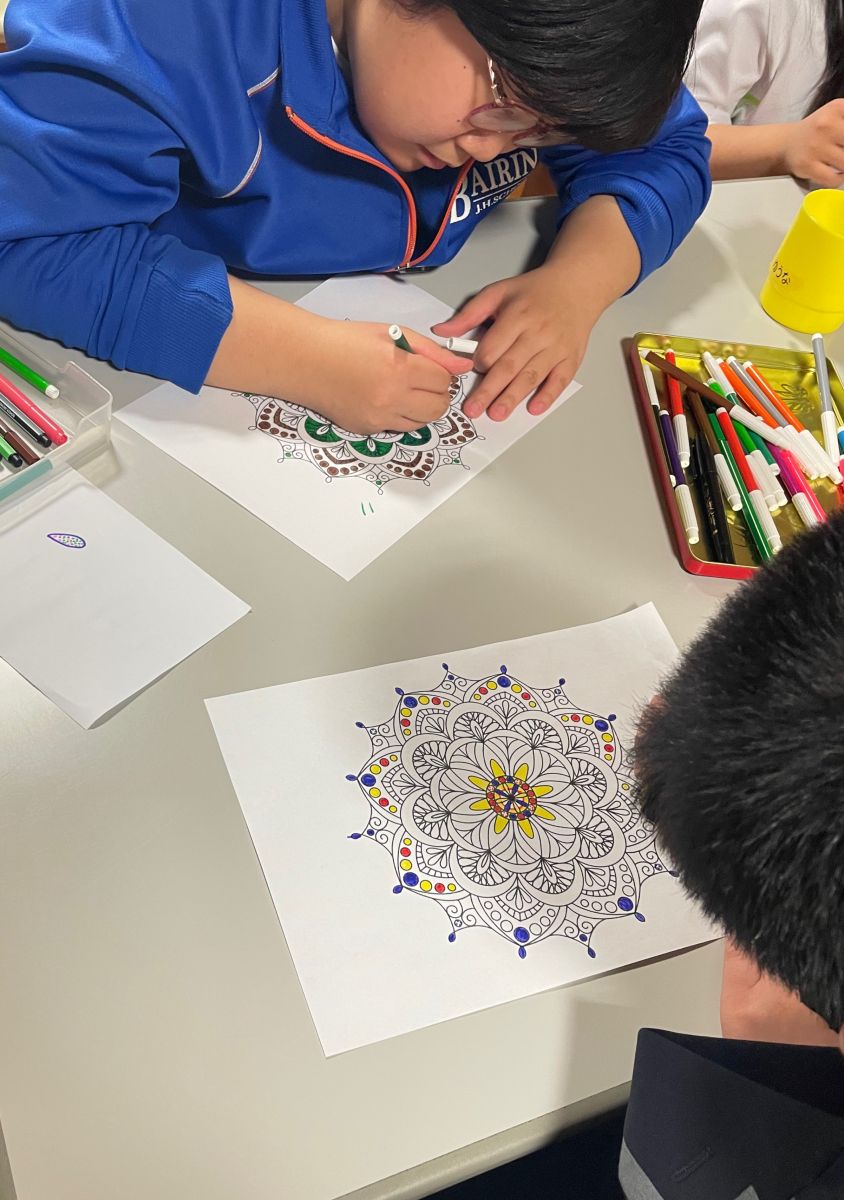 正に、点で絵を描く画法なのですが、今回は曼荼羅の塗り絵に点で色を塗るというとりくみを行いました。