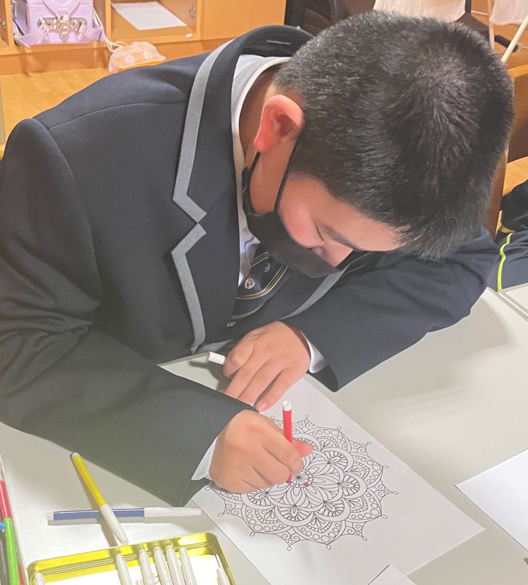 とりくみ後は点描画ではなく普通に塗り絵として塗っていましたが、それでもかなり集中しないと綺麗に塗れない細かさなので、これを最後までやり切れることに関心しました![]()