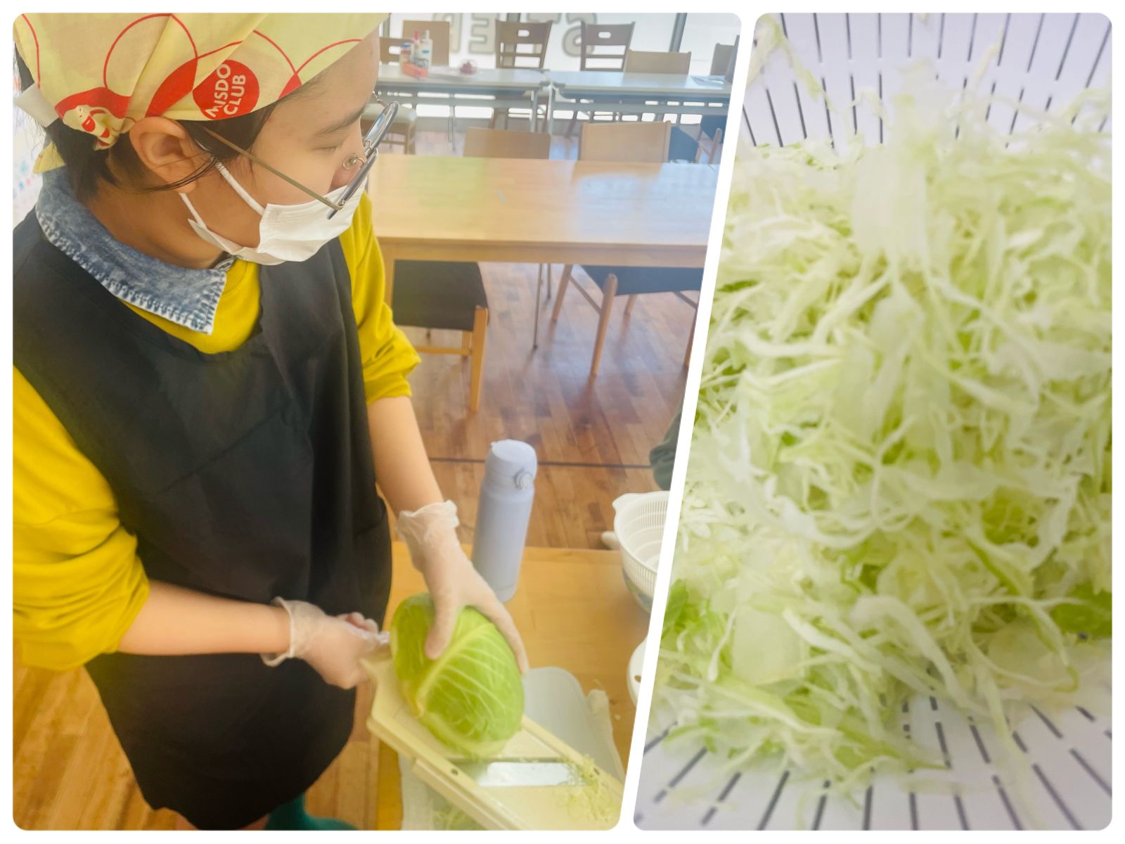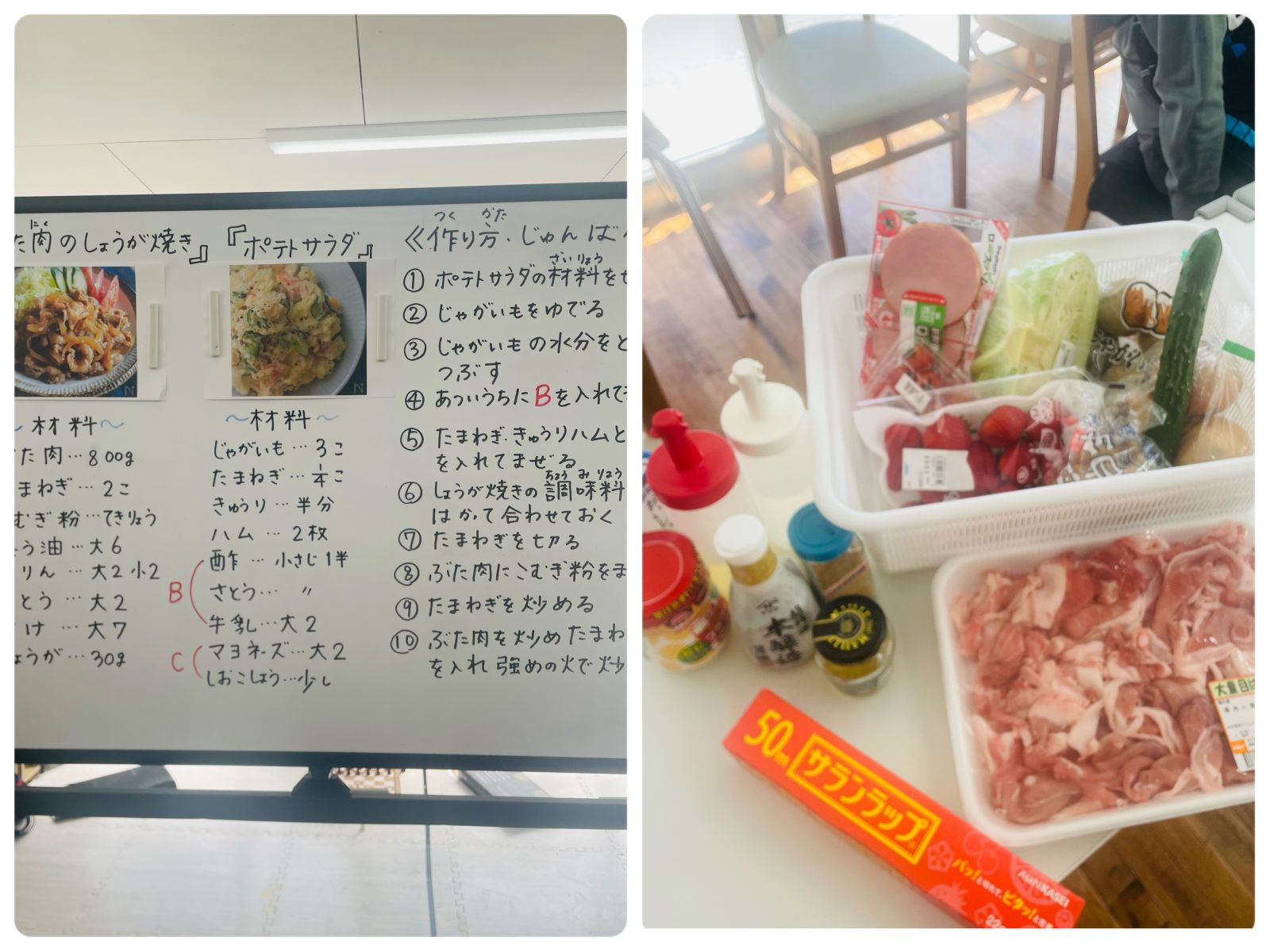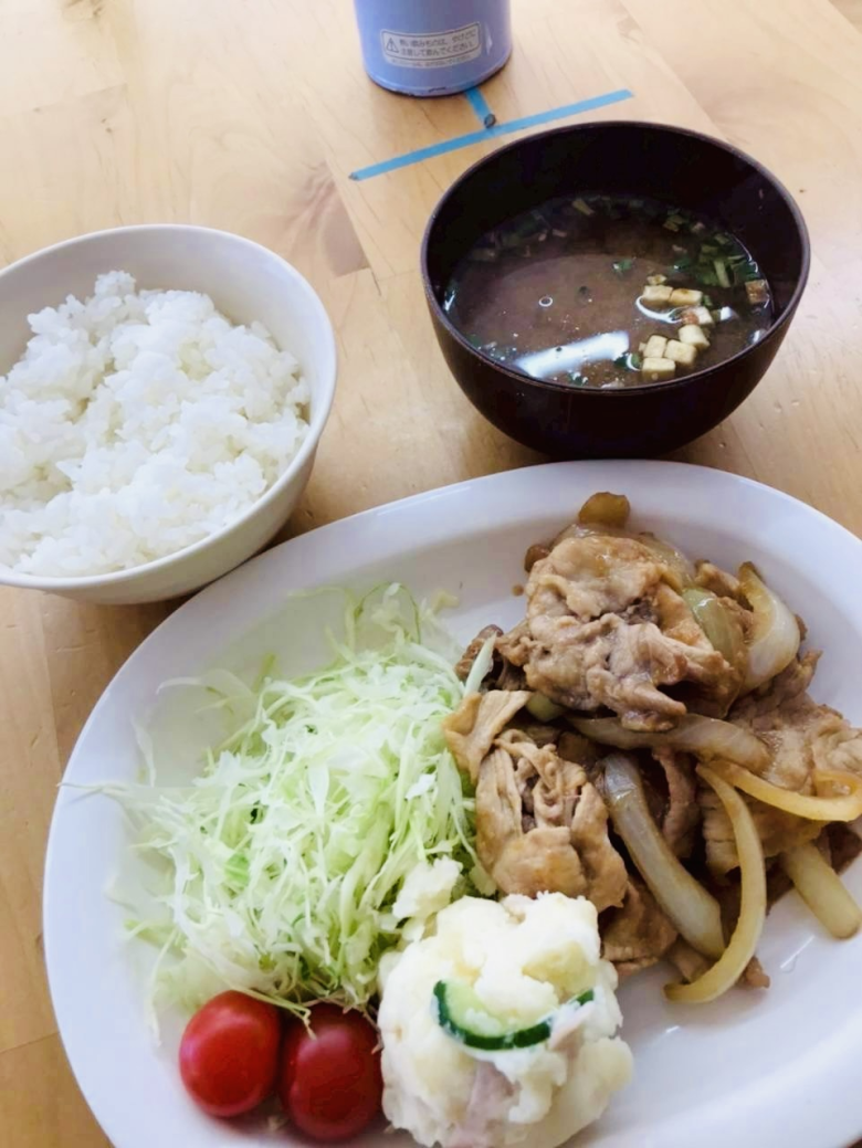 今回のブログでは、調理実習の様子をお届けします。この日の献立は、「豚肉の生姜焼き定食」です![]()