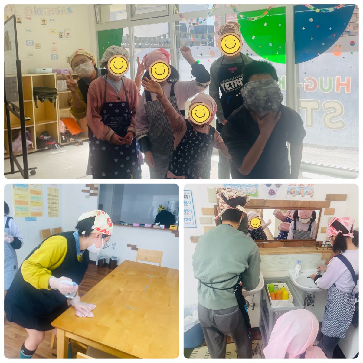 調理にとりかかる前にまずは手洗いと机の消毒でしっかり衛生対策![]()